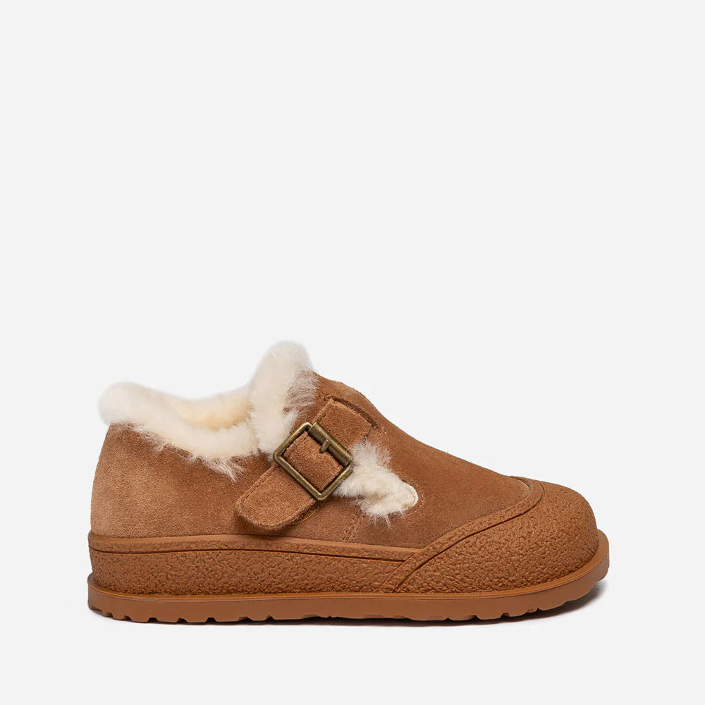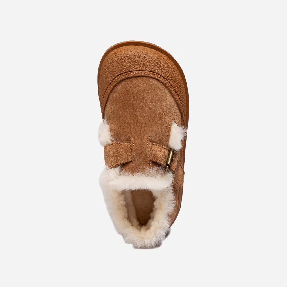 The UGG Kids Shearling Mary Janes are the perfect combination of style and comfort for little feet. Crafted with a durable cowskin upper and a soft sheepskin lining and insole, these Mary Janes provide warmth and coziness with every step. The rubber outsole offers secure traction, making them ideal for playtime or special occasions. With their classic design and premium materials, these Mary Janes are a stylish and practical choice for kids.