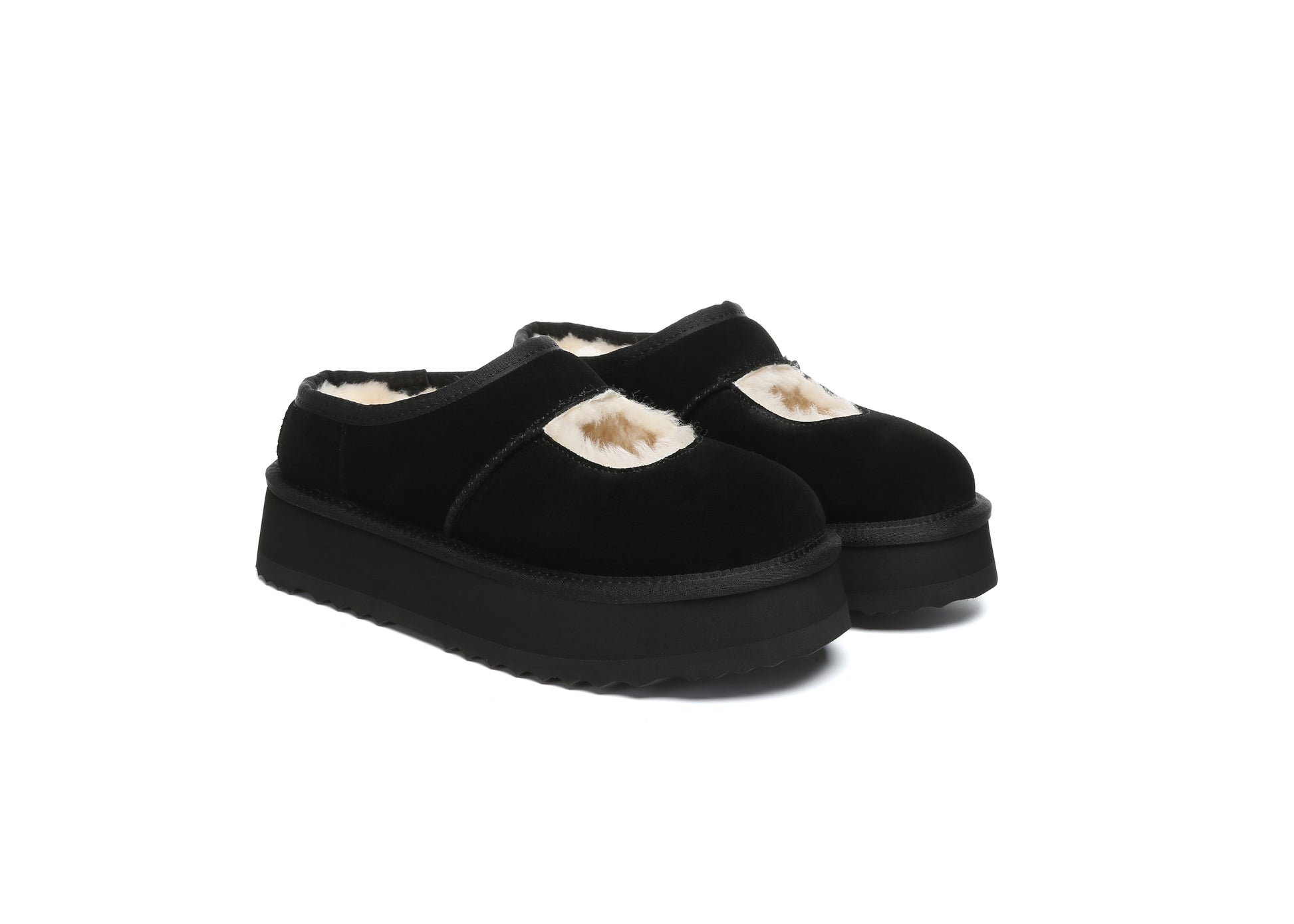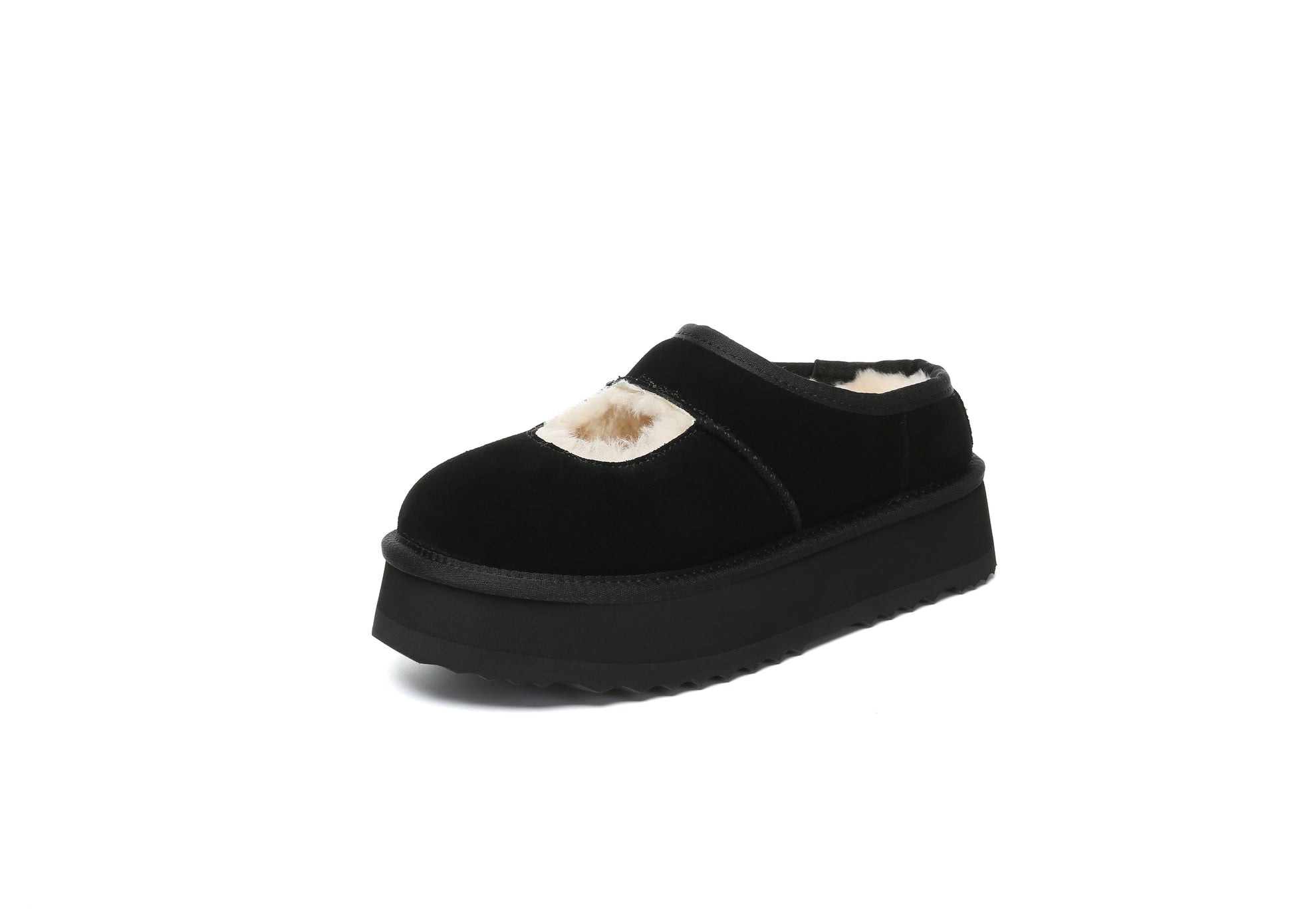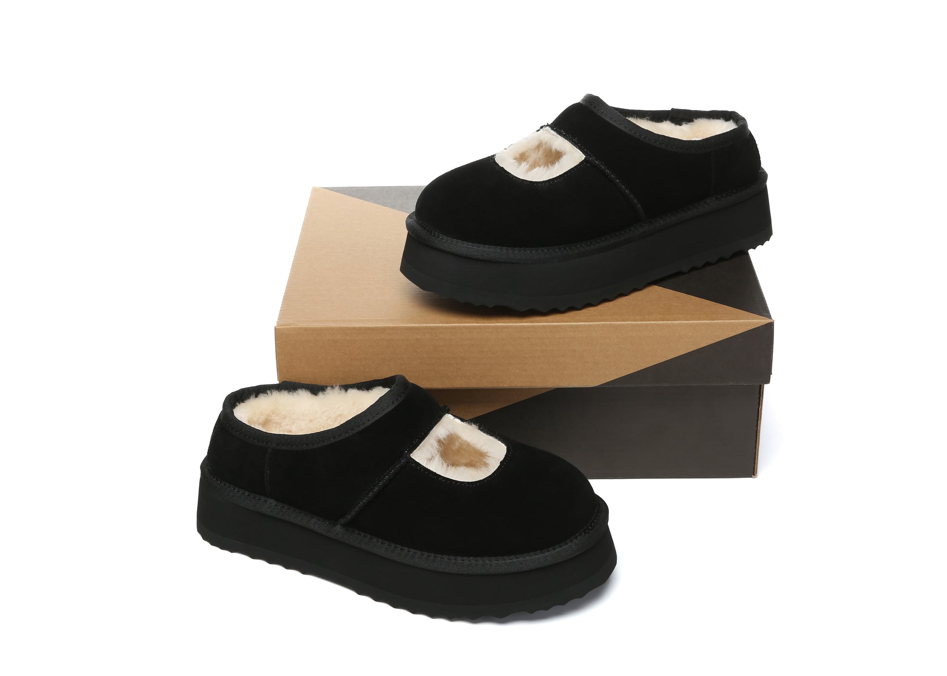 - Square-shaped cut-outs on the upper reveal fluffy sheepskin wool, adding a unique and playful touch.
