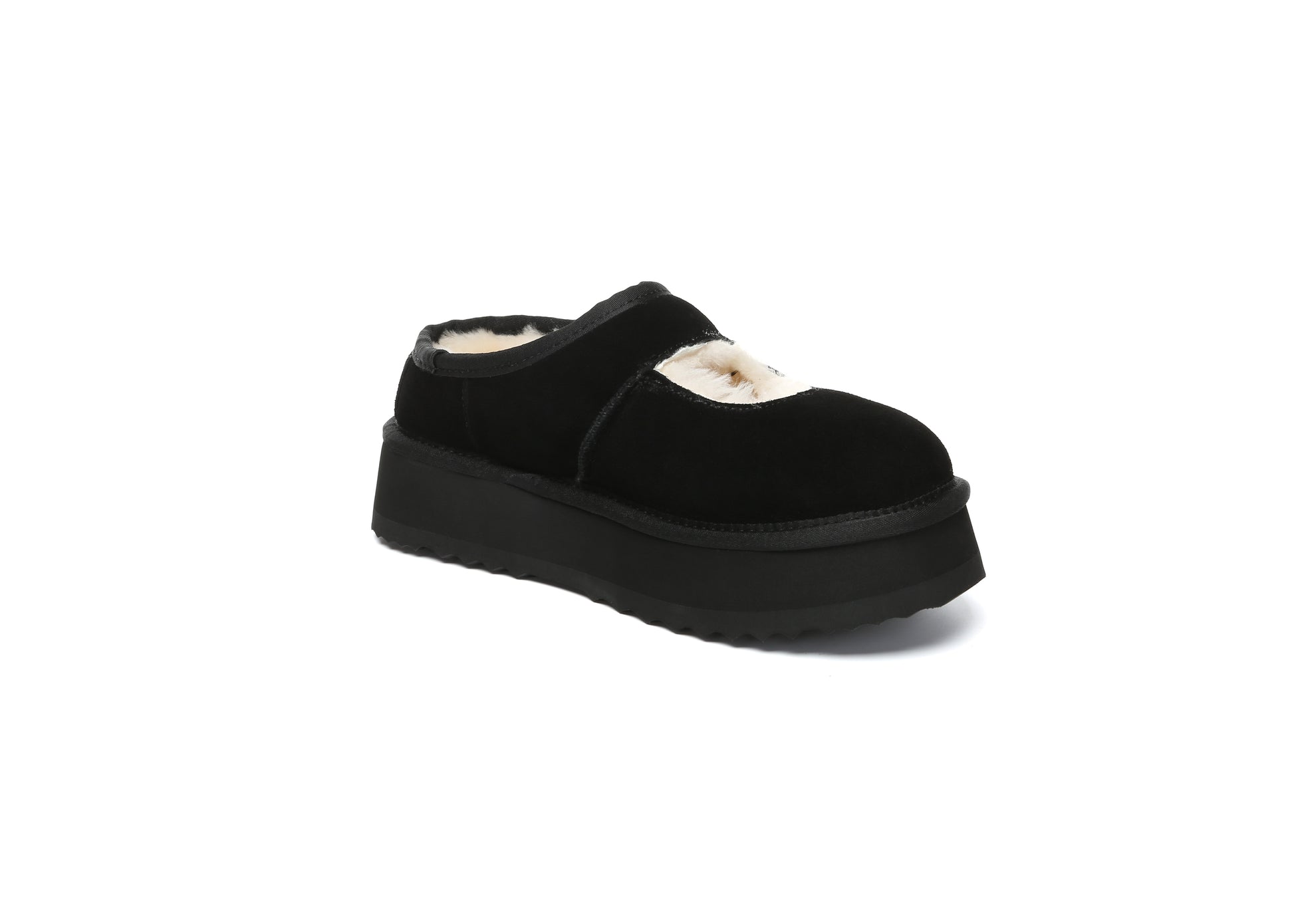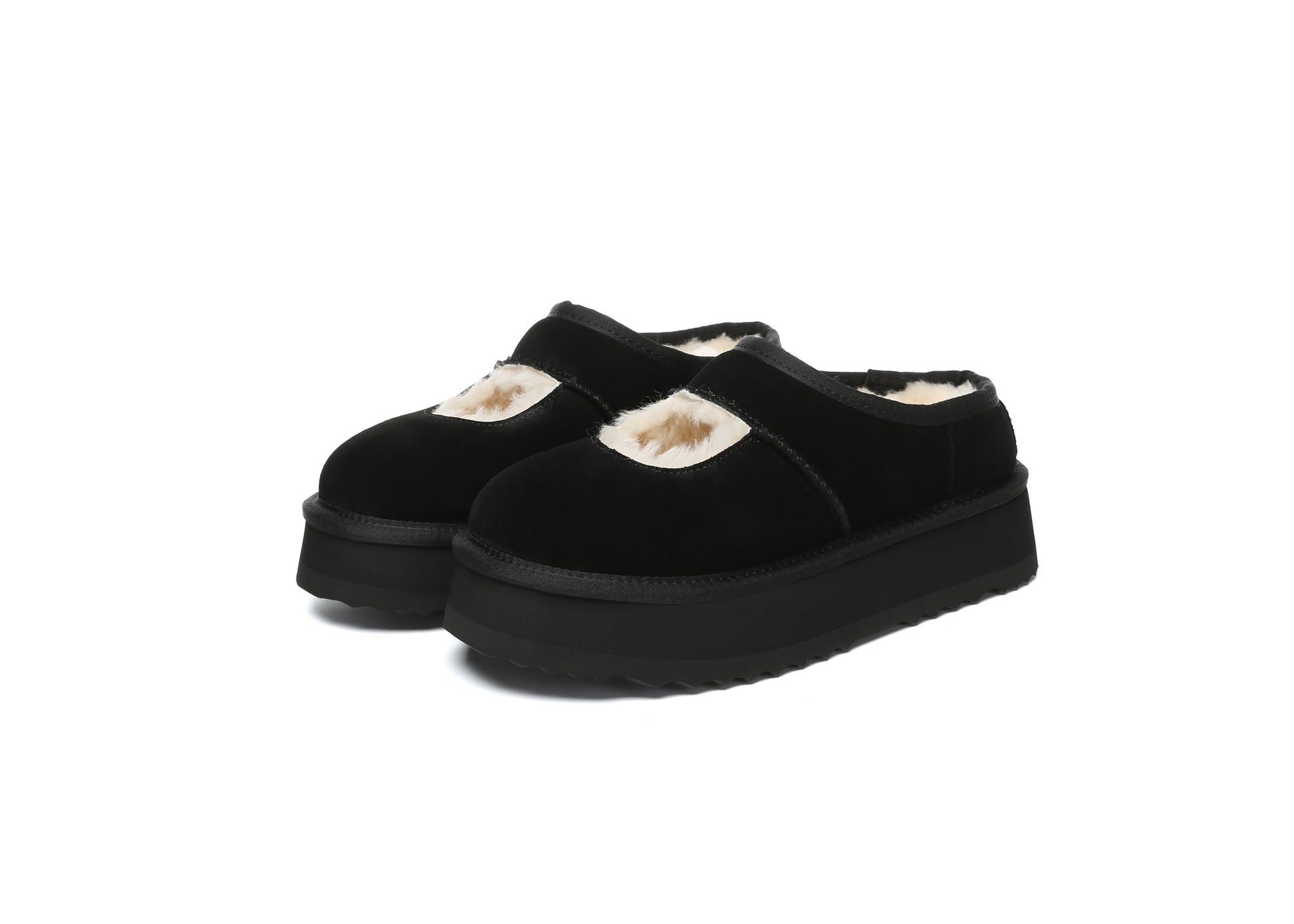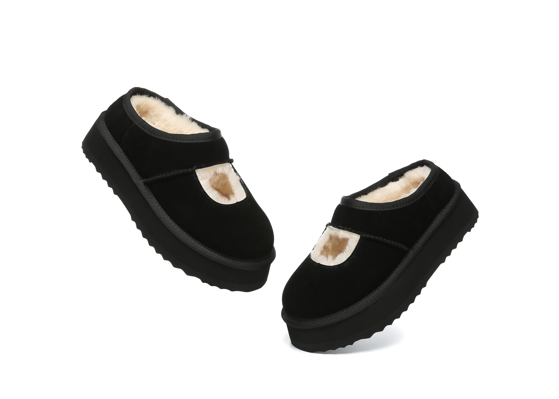 - Square-shaped cut-outs on the upper reveal fluffy sheepskin wool, adding a unique and playful touch.
